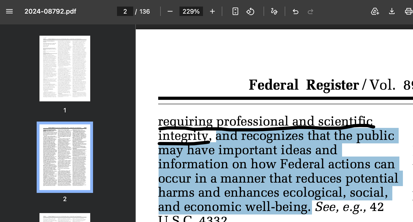 Multiple federal agencies and state groups are finalizing rule changes that bypass environmental review, exclude public participation, and hide accountability for Biotechnology developers that want to use genetic engineering in animals to achieve goals of the Endangered Species Act. The developers will use GMO plants that have lease agreements on the patents in the name of restoration... Under the language of “innovation,” and “science-based decision-making"... Here are the federal agencies that recently took action; The Council on Environmental Quality (CEQ) finalized its "NEPA Phase 2" rewrite, which took effect July 1, 2024,