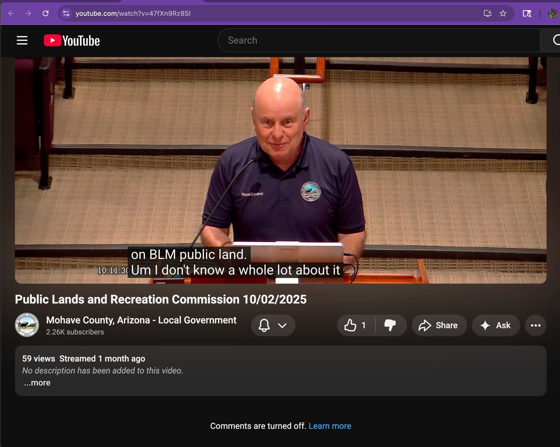 At the Public Lands and Recreation Commission meeting on 10/02/2025, a County representative openly said, “um, I don’t know a whole lot about it,” while presenting the BLM’s proposed Rescission of the Conservation and Landscape Health Rule (You can see this moment in the meeting video. (11:40'ish)